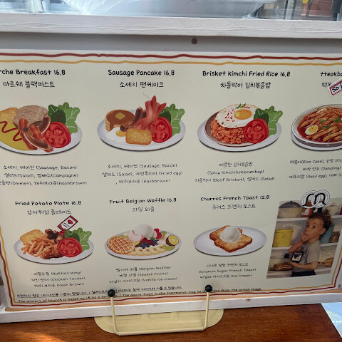 몇 주간의 여행 후, 서양식 아침 식사가 먹고 싶었는데, 딱 맞았어요. 직원들도 친절하고, 정통 미국식 아침 식사도 훌륭했어요. 소시지는 아시아식 양념이 아닌 미국식 양념이었는데, 3주간의 여행 끝에 정말 반가웠어요. 분위기도 아주 편안했어요.