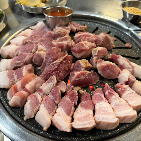 한국에서 경험한 최고의 바비큐 중 하나였습니다. 직원들이 매우 친절하고 도움이 되었고, 흑돼지도 맛있었고 반찬도 훌륭했습니다.