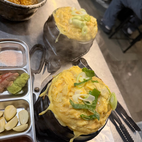 맛있고 육즙이 풍부한 흑돼지 뱃살과 어깨살입니다. 입에서 녹고 아주 맛있습니다. 김치찌개와 계란찜도 맛있었습니다. 다시 올 것인가