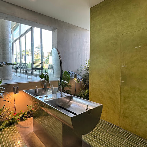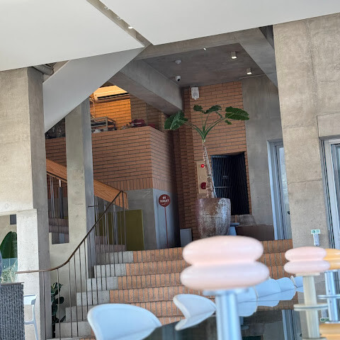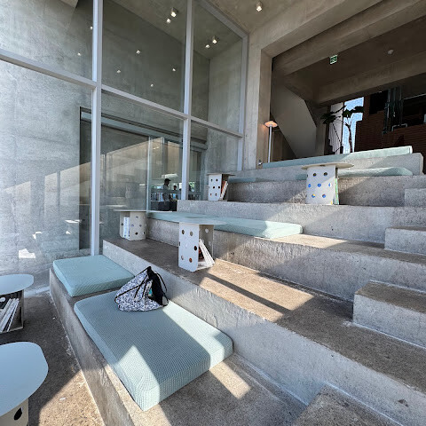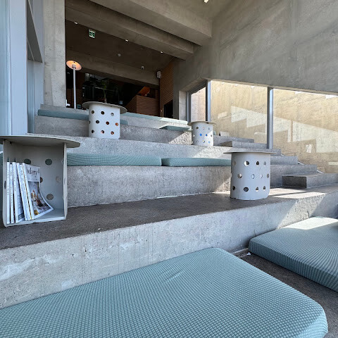 한쪽 휴식 공간은 계단을 의자로 활용하여 태국의 전시 공간을 연상시키는 깔끔하고 미니멀한 분위기를 자아낸다.
