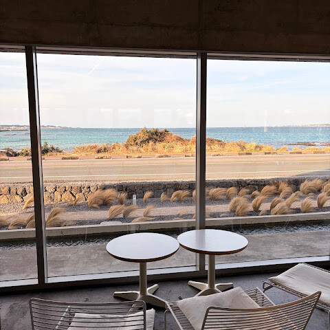 차분하고 미니멀한 공간에 멋진 바다 전망을 자랑하는 아름다운 카페입니다. 커피 맛도 훌륭하고 분위기도 평화롭고 편안해요. 제주도에 오시면 꼭 한번 들러보시길 추천합니다 🩵