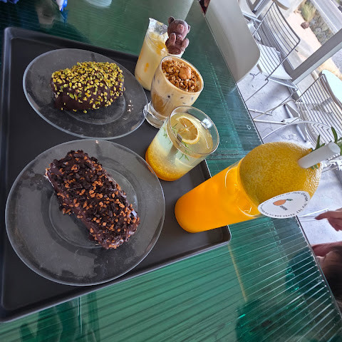 아늑한 분위기와 멋진 전망을 자랑하는 작고 아름다운 카페예요. 한라봉 주스, 아이스 라떼, 초코 바스크, 피스타치오 치즈 케이크를 주문했는데, 모두 너무 맛있었어요! 여름 더위를 피하기에 완벽한 곳이에요! 강력 추천합니다! 🍊🧡🤗