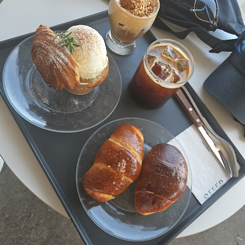 저는 보통 옥수수 라떼나 한라봉 주스를 시켜요! 정말 맛있고 달콤해요 💘 빵 종류는 제철에 따라 바뀌어서 항상 새로운 맛을 느낄 수 있어요 ◡̈ 작년에 옥수수 파이를 먹어봤는데 정말 맛있었거든요. 아직도 팔고 있어서 너무 기뻐요!