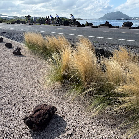 잠시 동안 아무 생각 없이, 그저 동해와 우도를 바라보며 앉아 있었다. 바람에 살랑이는 갈대, 가끔 지나가는 차, 맞은편에서 사진을 찍는 관광객들을 보며 마치 고정된 장소에서 촬영된 다큐멘터리처럼, 내 여행이 그 순간 멈춰버린 듯한 기분이었다.