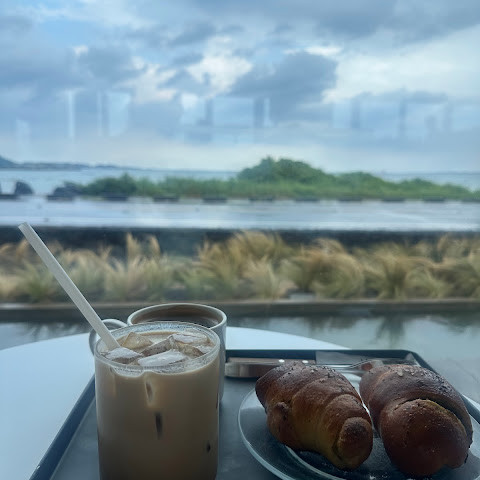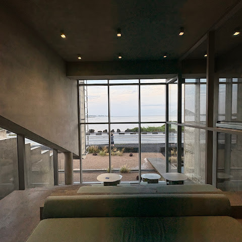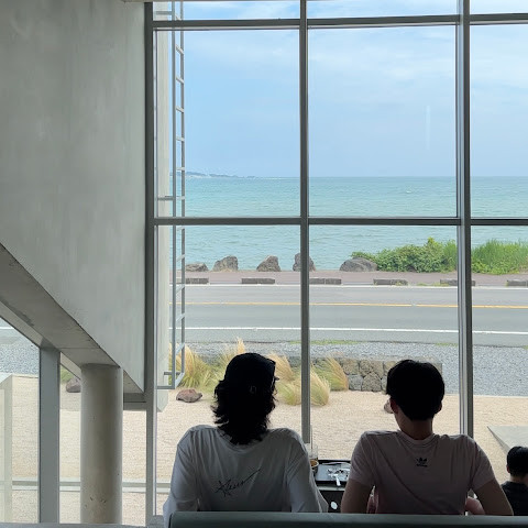 바닷가 풍경을 감상하며 편히 쉴 수 있는 카페. 노출 콘크리트 건물과 심플한 인테리어가 마음에 들어요... 사람이 별로 없어서 정말 편해요😌