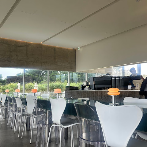 아름다운 경치를 감상하며 맛있는 커피와 간식을 즐기기에 완벽한 장소입니다. 멋진 건축과 인테리어 디자인이 돋보입니다.