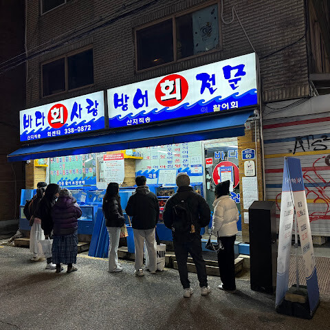 한국 생선회를 위한 정통 벽의 구멍. 직원분들이 너무 친절하시고 헷갈리는 외국인들에게 한국식 회 먹는 방법도 가르쳐주셨어요 🏻