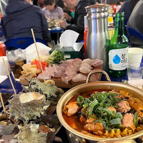 제주 여행중 방문한 김녕오라이! 김녕 바닷가 앞에서 먹는 회 말모🫶🏻 회 두툼하고 정말 신선합니다! 광어 참돔 방어 전부 맛있었어요 백김치에 싸먹으면 두배로 맛있습니다.. 딱새우라면은 양이 정말 많습니다 라면 두개는 들어가는 것 같아요 면은 꼬들거리고 국물이 정말 진해서 맛있게 먹었습니다! 서비스도 엄청 많이 주셔서 친구들이랑 소주 열병 마셨습니다😵‍💫가게 주변에 귀여운 고양이들도 많아요 다음에는 츄르 챙겨서 놀러가야겠어요💨