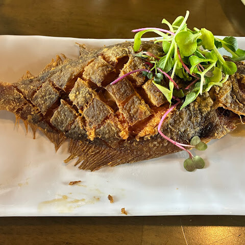 생선은 제가 인생에서 먹은 최고의 생선 중 하나였으며 매우 신선하고 부드러웠습니다. 굉장히 통통하고 육즙이 풍부하며, 소금으로 살짝 간을 해서 삼키기 편했습니다. "서비스"로 각 테이블에는 튀긴 생선이 제공되었으며 매우 바삭하면서도 가벼운 맛이 나고 전혀 기름지지 않았습니다.