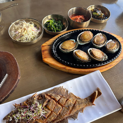 음식은 훌륭하고 가격은 식사의 질에 비해 합리적입니다. 생선이 정말 싱싱하고(직원분이 바다에서 잡은 거라고 하더군요) 전복도 정말 크고 육즙이 많았어요