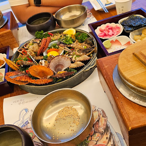 60대 한정식집 여주인 딸, 그리고 한식을 이어갈 20대 꿈나무가 부단히 노력하는 한식 곳간, 첫번째 이야기가 미포에서 시작된다. 7가지 해물이 나오는 해물장도 유명하다. 4가지의 해물장과 특제솥밥도 조화가 잘 이루어져 있다.