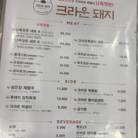 이곳은 비싸서 우리 점심은 kw196000에 왔는데 고기를 많이 주문했어요