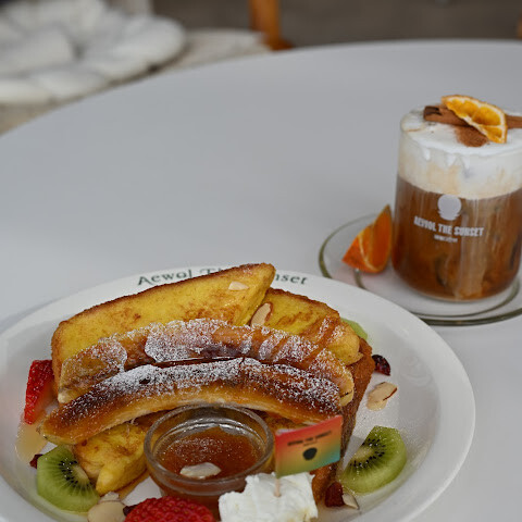 제주도 여행 올때마다 필수 코스로 방문하는 애월더선셋💘 다양하고 맛있는 디저트, 음료, 비어, 브런치가 있어 좋은 사람들과 좋은 시간 보내기 딱 좋은 곳! 토피넛과 우유에 돌하르방 커피얼음을 녹여가며 맛보는 애월더선셋 시그니쳐 메뉴! 토피넛라떼🍨과일,아이스크림, 요거트, 그래놀라, 쿠키가 들어가 맛있을수 밖에 없는 애월더선셋 파르페🌈 비쥬얼담당 더선셋 크로플까지! 꿈 속의 한 장면처럼 기억될 애월더선셋💘 누하스 안마의자로 15분 힐링시간도 꼭 놓치지말고 가져보세용~ 후회 없는 제주여행 하시려면 필수 코스로 꼭 방문해 보세용👍🏻눈 앞에 펼쳐진 에메랄드빛깔 제주바다는 덤🤩한번 방문하시면 평~~ 생 단골 되실꺼예요🌸
