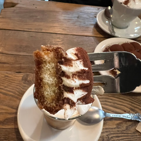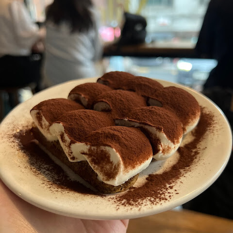 티라미수는 갓 만들어져 가볍고 풍미가 가득했고, 커피는 진하고 균형 잡힌 맛이었어요. 티라미수 마니아라면 꼭 가봐야 할 곳이에요. 그리고 제 말을 믿으세요, 절대 혼자 다 드세요. 정말 맛있거든요!