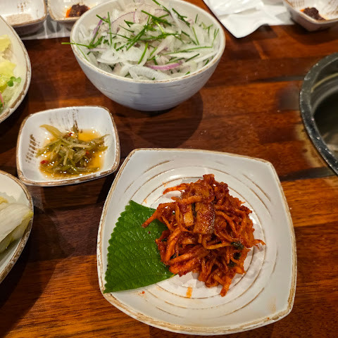 한우 바비큐만 제공하는 곳으로 가격은 중~고가이지만 한우의 질이 매우 좋고 반찬과 김치와 함께 먹으면 상큼하고 맛이 풍부하다.