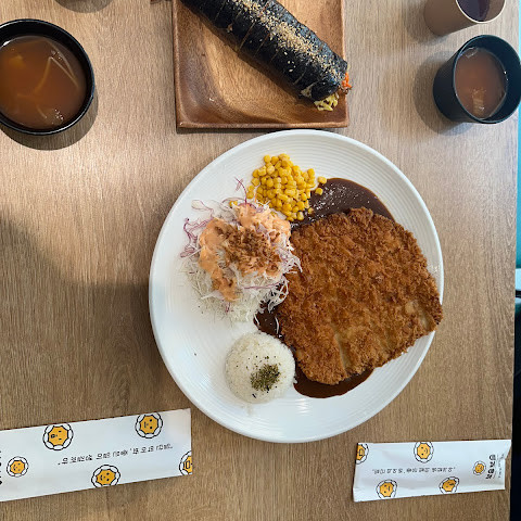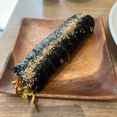 김밥은 맛있지만 크기가 커도 좀 비싸요. 특히 라면은 비싸요. 채식 옵션이 있으며 다이어트에 좋습니다.