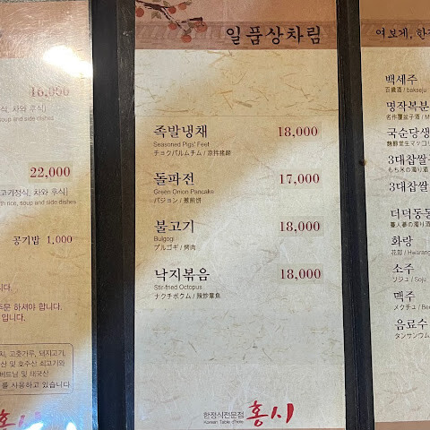 기타 메뉴 두부김치, 낙지볶음, 즉석고추장주물럭, 불고기, 족발냉채 등