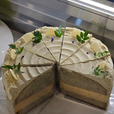 넓은 카페입니다. 독립 건물에 있고, 2층으로 나뉘어 있습니다. 1층에서 음식과 음료를 주문하고 픽업할 수 있습니다. 1층에는 좌석이 더 많습니다. 옥상 좌석도 있습니다. 오전 11시에 문을 엽니다. 저희는 오전 11시에 도착해서 첫 손님이었습니다. 평일이라 줄을 서지 않았습니다. 커피와 아이스티를 주문하고 케이크 두 개를 골랐습니다. 여기서 약 80분을 보냈습니다.