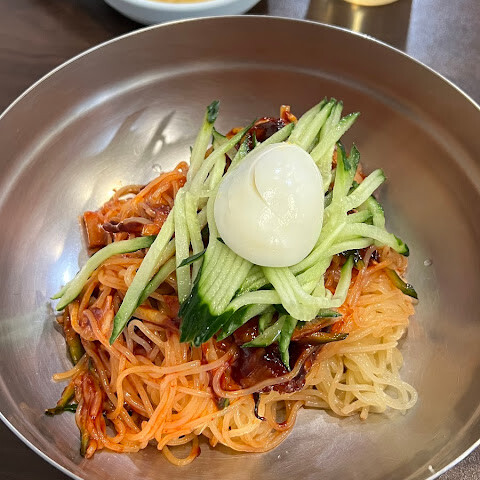 냉면은 쫄깃쫄깃하고 양념도 제대로 되어 있었어요. 사장님도 정말 친절하셨고, 저희가 어떻게 먹는지 잘 몰라서 서툴자 직접 오셔서 알려주시기까지 했어요. 영어도 조금 하시는 것 같았고요. 강력 추천합니다! 아, 그리고 2025년 블루리본 레스토랑으로 선정되었다는 것도 잊지 마세요!