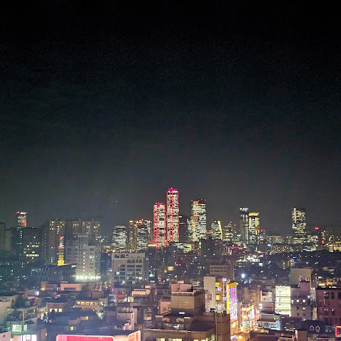 방이 넓고 소파가 따로 있어서 좋았습니다. 북쪽으로는 전망이 아주 좋았고, 동쪽으로는 남산타워가 살짝 보여서 좋았습니다.