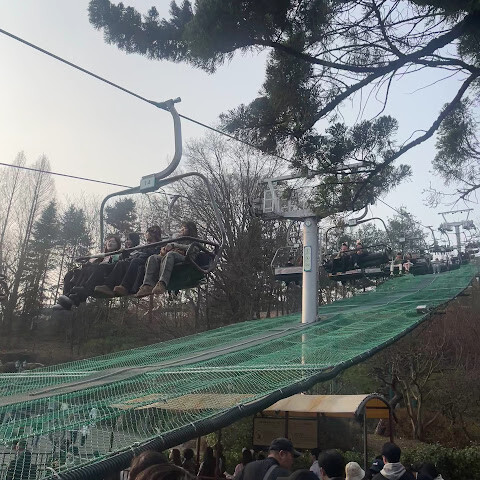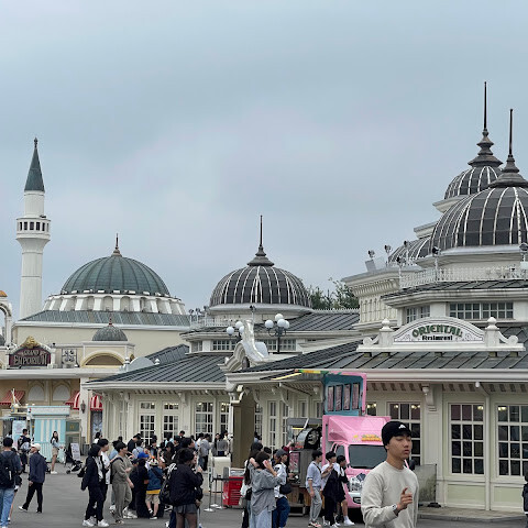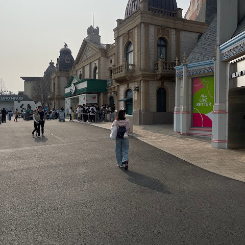 강남에서 여기까지 오는 데 한 시간이나 걸려서 꽤 힘들었어요. 겨울이라 제일 오래된 롤러코스터는 못 탔지만요. 테마파크는 정말 좋고, 음식도 디즈니랜드보다 훨씬 맛있어요. 닭꼬치는 정말 최고예요. 너무 춥지도 덥지도 않은 계절에 가는 걸 추천해요. 너무 더워서 견디기 힘들거든요. 언니는 미니스커트를 입었는데도 시원해 보이네요. 코뿔소 가죽이라도 된 걸까요? 😭😭