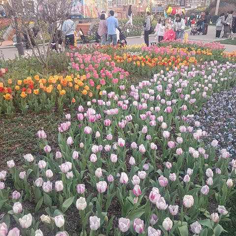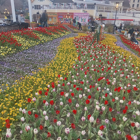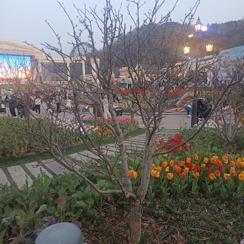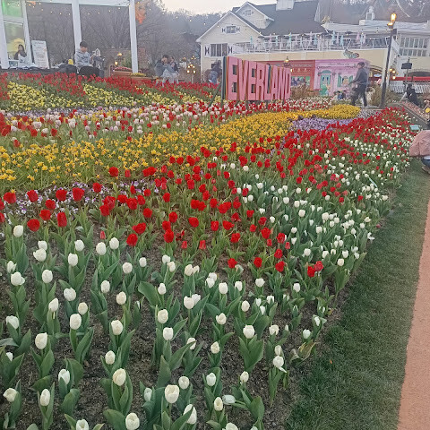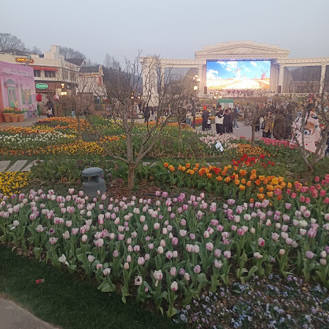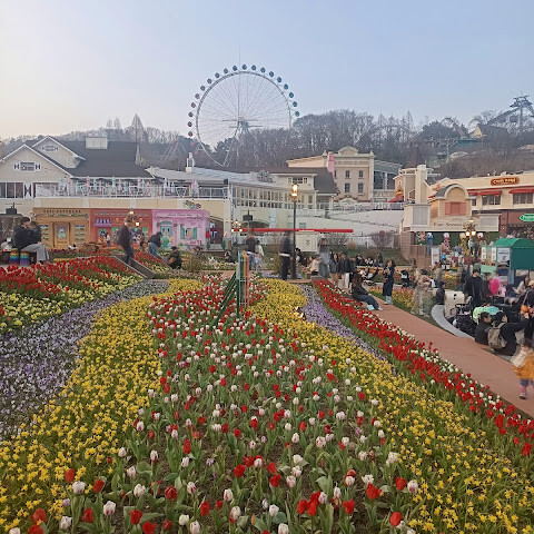에버랜드 놀이기구도 좋았지만, 하이라이트는 만개한 튤립이었어요. 정원 전체가 무지개처럼 다채로운 색깔로 물들어 있었고, 어느 곳이든 사진 찍기 좋은 장소였죠. 레스토랑에서 식사를 했는데 양이 정말 푸짐했어요. 정말 즐거운 경험이었지만, 일부 놀이기구 대기줄이 너무 길어서 동선을 잘 계획해야 할 것 같아요.