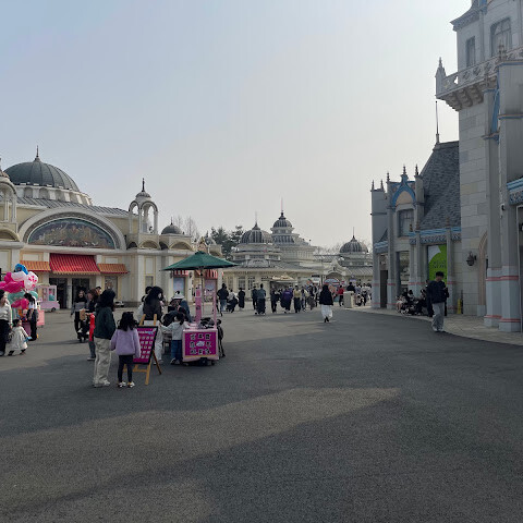 괜찮긴 해요. 나쁜 테마파크는 아니지만 그렇다고 인상적인 곳도 아니에요. 벽 페인트가 벗겨지거나 얼룩진 곳이 있어서 관리가 제대로 안 된 것 같아요. 레이저 쏘는 놀이기구처럼 2000년대 수준의 240p 그래픽을 쓰는 놀이기구는 너무 낡고 별로예요. 그래도 스릴 넘치는 놀이기구들이 몇 개 있고, 스릴 넘치는 놀이기구를 탈 때 소지품을 놓을 수 있는 트레이/선반을 무료로 제공해 줘요. 한국 여행에서 테마파크를 고른다면, 시내에서 가장 가깝고 최근에 확장된 롯데월드를 추천해요. 다른 테마파크들은 그냥 평범하고 너무 멀어요.