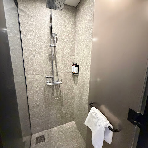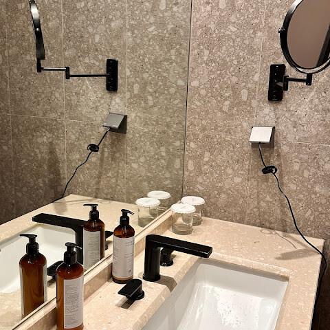 객실은 깨끗하고 깔끔했고, 방음도 훌륭해서 옆방의 배관 소리나 물소리, 기타 소음이 전혀 들리지 않았어요. 게다가 방 입구 쪽으로 전신 거울이 있어서 정말 좋았어요! (침대 반대편이 아니라요!)