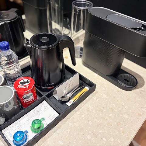 객실 청소 직원분들도 정말 세심하게 신경 써주셨어요. 물병을 두 개에서 다섯 개로 채워주셨어요. 아이에게 분유를 타야 한다는 것도 알고 계셨고요. 방에는 캡슐 커피 머신까지 있었어요!