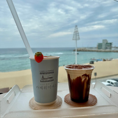 바다가 보이는 카페에요. 강릉 카페거리에 오면 자주오는데 새로 지은 건물들도 있지만 그래도 좀 오래 있는 곳이 좋죠~
