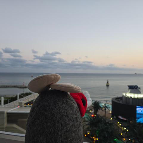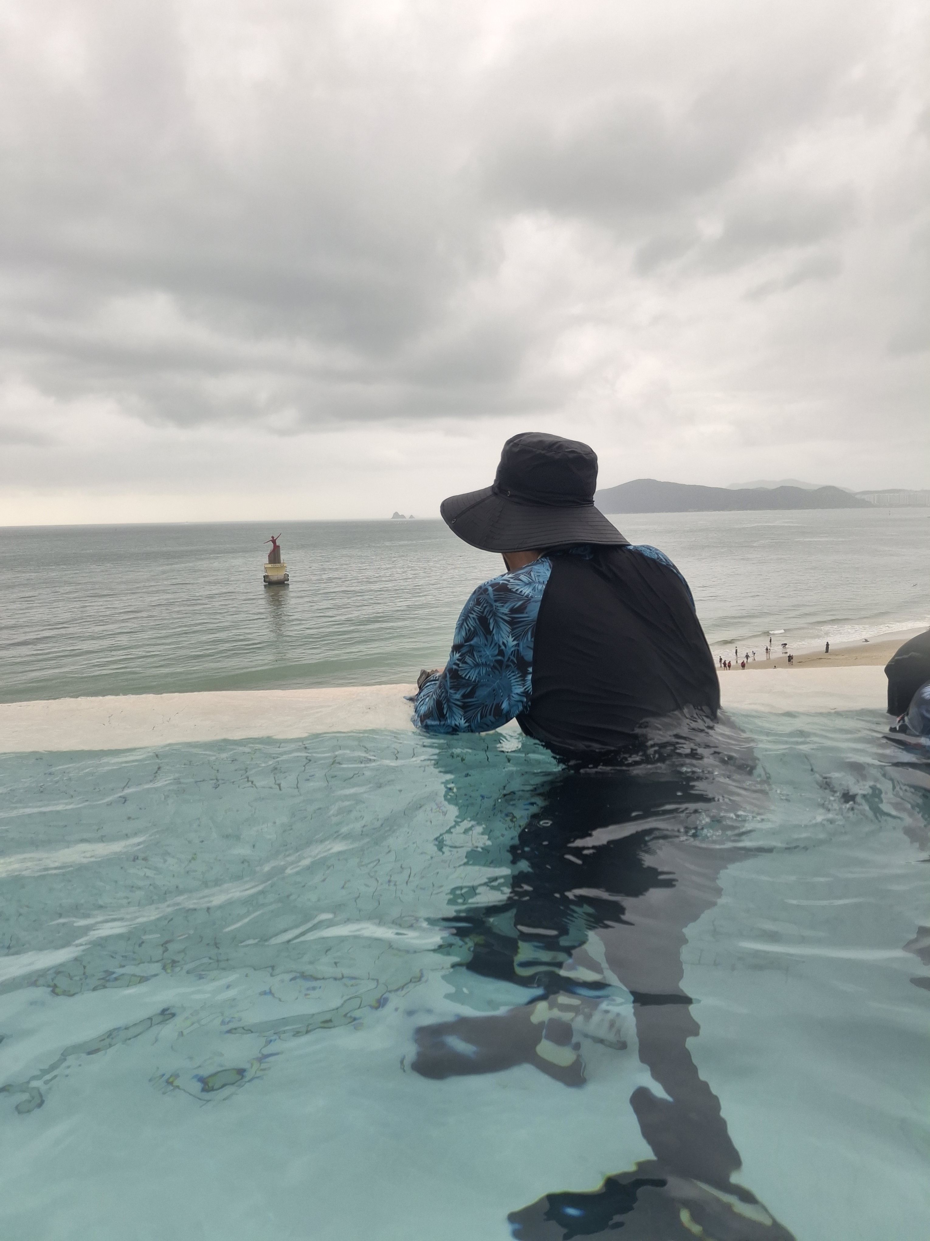 그 후 바다 풍경과 가게 앞 워터파크 사진을 찍으러 밖으로 나갔지만, 티켓은 사지 않았어요.
