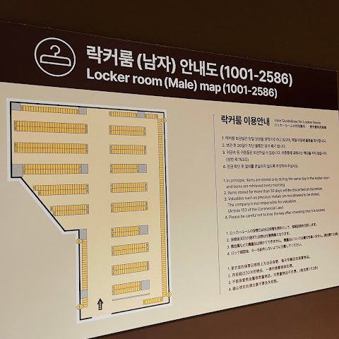입장권을 구매하거나 이용권으로 입장하시면 열쇠 팔찌를 받아 신발장에 신발을 넣고, 사우나복과 수건을 받아 사물함에서 옷을 갈아입습니다.
