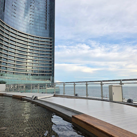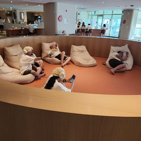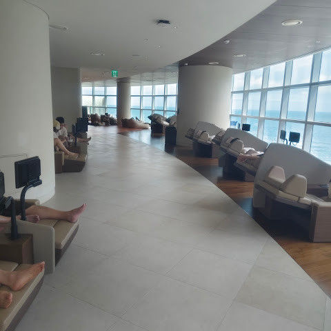 실내외 워터파크를 갖춘 훌륭한 한국식 스파/목욕탕/사우나였습니다. 저는 스파 구역에만 갔어요. 남성 전용 욕탕은 깨끗하고 바다 전망을 감상하며 몸을 담그기에 정말 좋았습니다. 야외 욕탕은 편안하게 쉬면서 수제 초콜릿 우유를 마시기에 좋았습니다. 휴게 공간은 넓었지만 솔직히 의자와 빈백이 더 많았으면 좋았을 것 같아요.