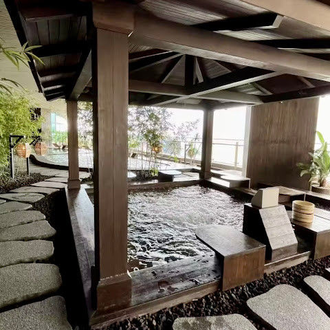 물 너무 깨끗하고 야외스파 꼭 해외 나온 듯 분위기 넘치는 풍광 예쁘다 물온도도 대부분 38도. 몸담그기 따뜻하고 가을바람 선선한 바람 맞으며 들어가 있기에 적당하다