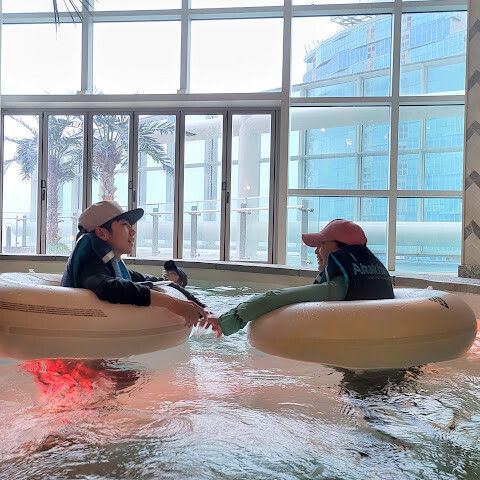 실내 파도풀도 디제잉 파티와 함께 신나는 분위기에서, 파도가 제법커서 아이들이 좋아한다. 실외 유수풀도 물살도 적당해서 즐거운 망중한 보내기 딱이다.