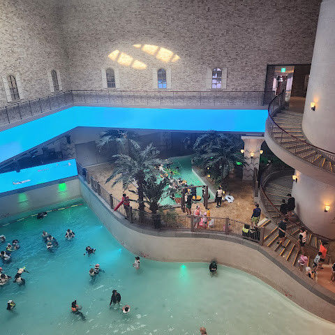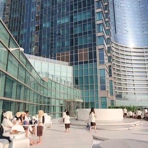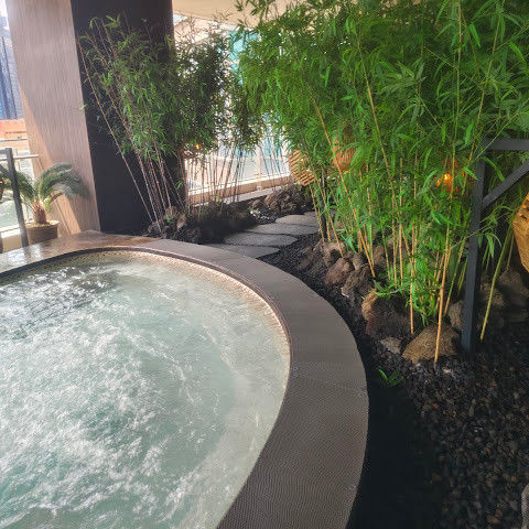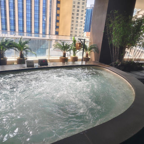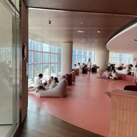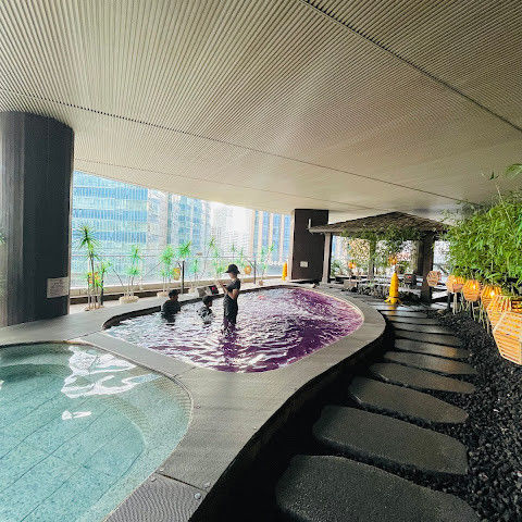 4층 워터파크는 사람이 별로 없었고, 5층 목욕탕은 그저 그랬지만, 6층 수면 공간은 음식과 음료가 풍부해서 좋았습니다. 야외 족욕 공간도 넓고, 스팀룸도 있었어요. 바깥 풍경이 사진 찍기에도 정말 좋았어요! VBP로 무료 입장하니 정말 최고예요!