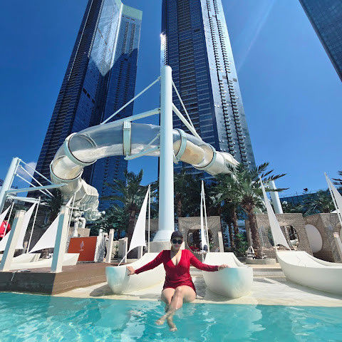 끝나는 쪽은 요금이 좀 비싸지만, 인피니티 풀에서 보이는 경치는 그만한 가치가 있습니다. 마찬가지로, 슬라이드는 아이들이 좋아할 만한데, 기다려야 합니다(저희는 평일에 갔는데 사람이 덜 붐볐습니다).