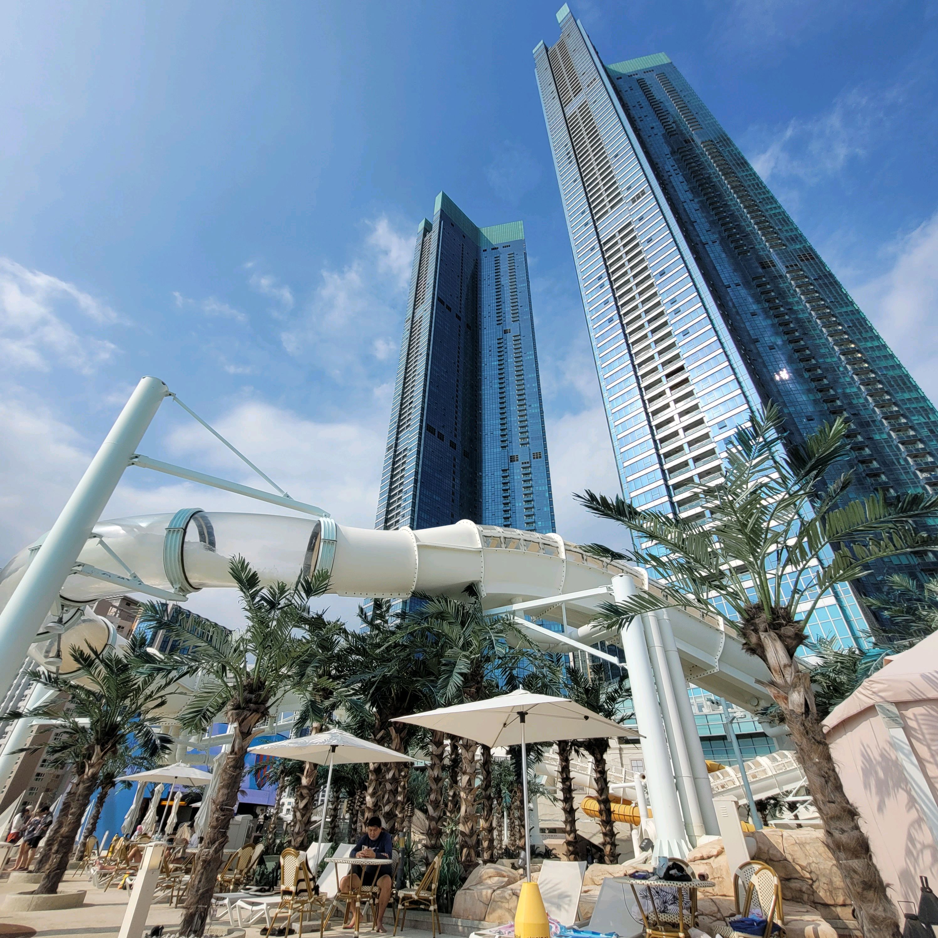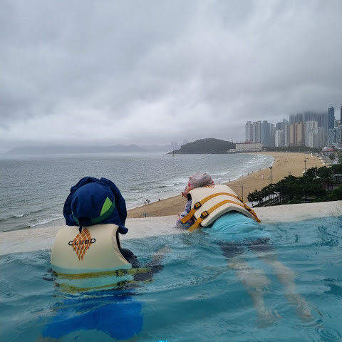 해운대뷰 좋아요. 숙박 하며 워터파크 하기 좋아요