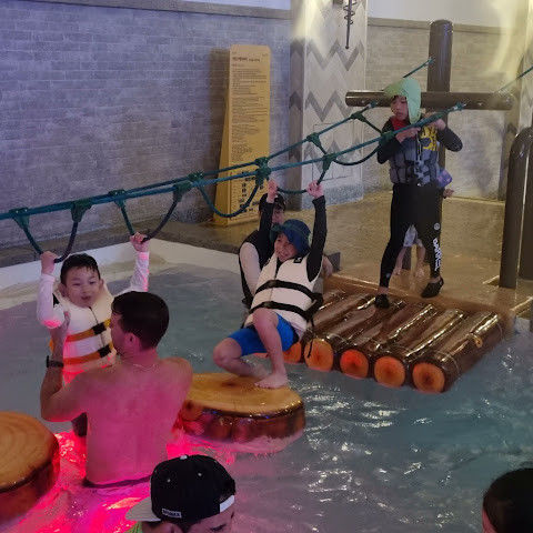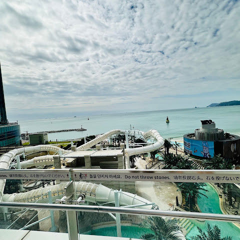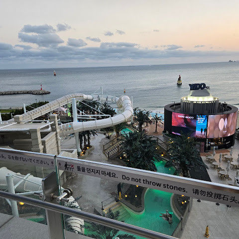 놀이기구 타는곳은 많이 없지만 온천과 밖에 수영장이 바다랑 연결되어 너무 멋지게 사진을 찍을수잇고 아이들 파도풀과 온천도 이용할수잇고 찜질방도잇어 어른들도 좋아할수잇는곳입니다