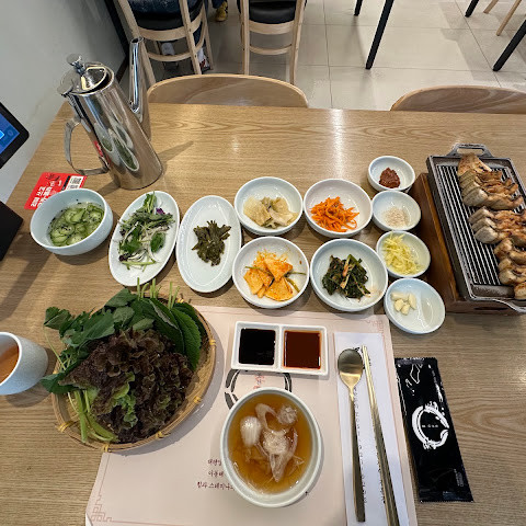 특선 메뉴인 소금에 절인 장어를 먹어봤는데, 맛은 좋았지만 장어에 작은 뼈가 좀 있었어요. 직접 재배한 채소가 식사에 신선함을 더해준다는 점이 마음에 들었습니다. 장어와 생소고기 세트(2인용, 89,000원)도 주문했는데, 생소고기가 부드럽고 맛있었습니다. 사이드 메뉴도 전반적으로 괜찮았습니다. 전반적으로 만족스러운 식사였습니다.