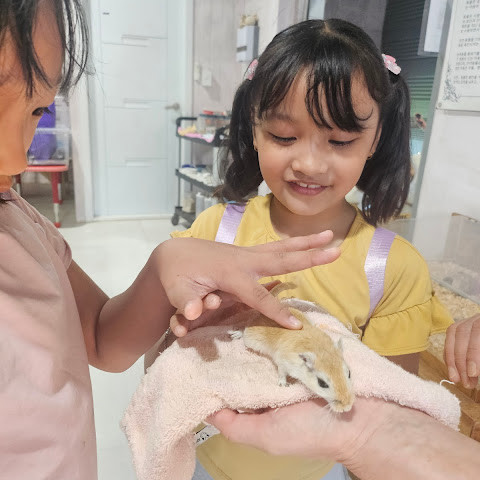 매우 좋은 곳이었고 주인도 매우 친절했습니다. 개, 고양이, 염소, 양, 돼지, 닭, 기니피그, 햄스터, 다람쥐, 쥐, 골든햄스터를 키우고 있었고 동물들에게 먹이를 주고 만질 수도 있었고 귀여운 동물을 안고 사진을 찍을 수도 있었습니다. 우리 아이들은 오늘을 매우 즐겼습니다. 감사합니다🥰🥰🥰