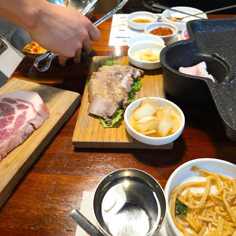 서울에서 이미 한국식 바비큐를 먹어봤었는데, 나중에 동문시장에서 훨씬 싼 가격에 한국식 흑돼지를 먹었어요.