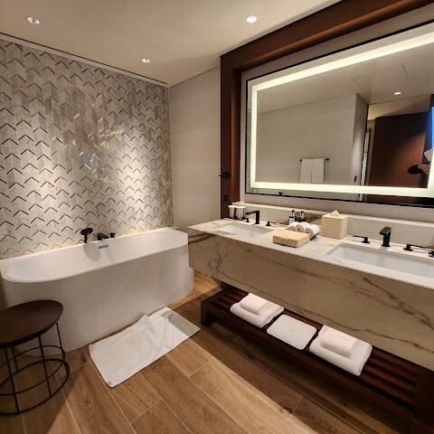 제 비행기가 취소되는 바람에 한국에서 하룻밤 더 묵게 되었어요. 인천공항에서 차로 15분 거리에 있는 인스파이어 코리아에 묵었는데, 정말 최고였어요. 객실도 넓고 인스파이어 아레나와 공항까지 보이는 멋진 전망을 자랑했어요. 셰프 레스토랑의 뷔페식 아침 식사도 훌륭했고요. 공항에서 밤새도록 기다린 후라 그런지, 이 호텔에서의 숙박은 정말 최고의 휴식이었어요.