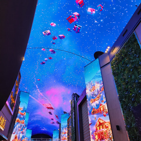 주말에는 사람이 너무 많습니다. 그래도 관광 오시는 분, 투숙하시는 분 차별없이... 150m에 달하는 통행로 벽면과 천장을 화려한 영상으로 수놓은 디지털 엔터테인먼트 거리 ‘오로라’ 환상적인 분위기를 볼 수 있는 점 좋습니다.