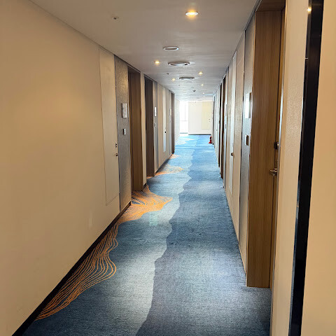 객실은 깨끗하고 편안했습니다. 공간은 중간 정도이고 너무 크지는 않았습니다. 트리플룸은 큰 캐리어 세 개를 넣기에는 조금 작았습니다.