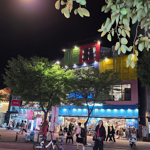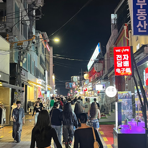 여기 정말 좋아요. 분위기가 너무 활기차고 재밌어요. 항상 사람이 많아요. 길거리 음식도 많고, 옷가게, 포토박스 등도 많아요. 대학생들이 많이 모이는 곳이자 젊은이들에게 인기 있는 거리예요. 거리 공연도 볼 수 있고요. 꼭 다시 올 거예요. 음식도 정말 맛있어요.