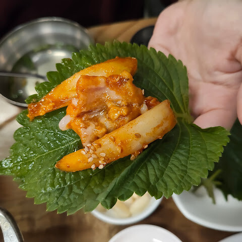 장어가 워낙 바삭바삭해서 깻잎에 싸야 가장 맛있고, 가격도 적당하고, 살짝 매워야 맛있습니다.