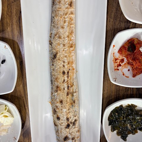 성산일출봉에서 내려오면 이 식당이 보이겠지만, 게으르지 말고 몇 걸음만 더 걸어가며 여기서는 먹지 마세요. 이곳의 갈치구이는 매우 얇고 전혀 지방이 없으며 가격도 비싼 편입니다. 성게 다시마 국물은 흙냄새가 나고, 전복죽은 약간 씁쓸하지만 맛이 없어요!