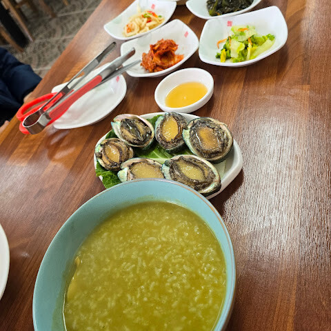 전복죽을 맛보기 위해 그곳에 갔습니다. 죽의 식감이 좋고 전복이 많이 들어있지만 제공된 소금으로 간을 해도 되지만 첫 맛이 다소 싱거울 수 있습니다. 레스토랑 바로 밖에 주차 공간이 많습니다.
