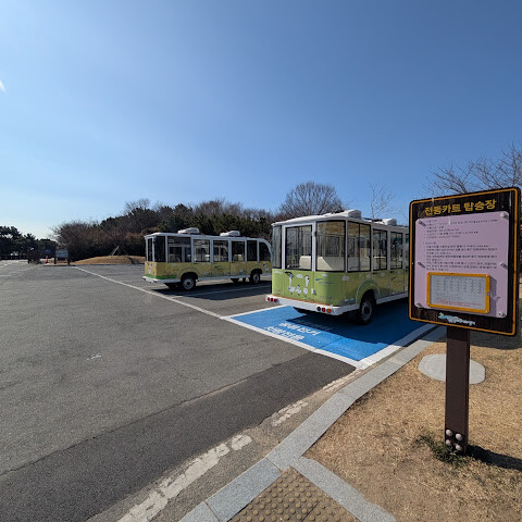 을숙도보호지역에는 일반 차량 운행이 금지되며, 친환경 교통수단인 전동 카트(무료)로 이동한다. 대형 버스 주차장에서 출발해 탐방체험장, 남단탐조대, 을숙도대교, 메모리얼파크를 차례로 오간다.